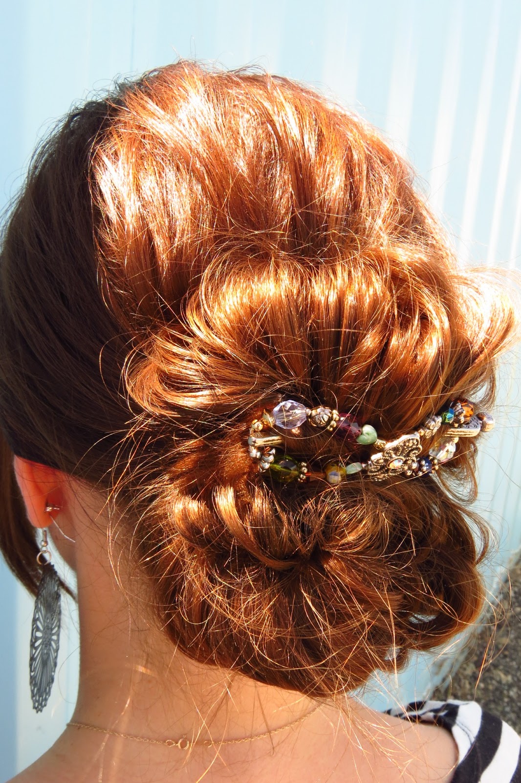 Make the most of your short curly hair with a ponytail puff updo. Use some good kind of styling gel or wax for styling.
